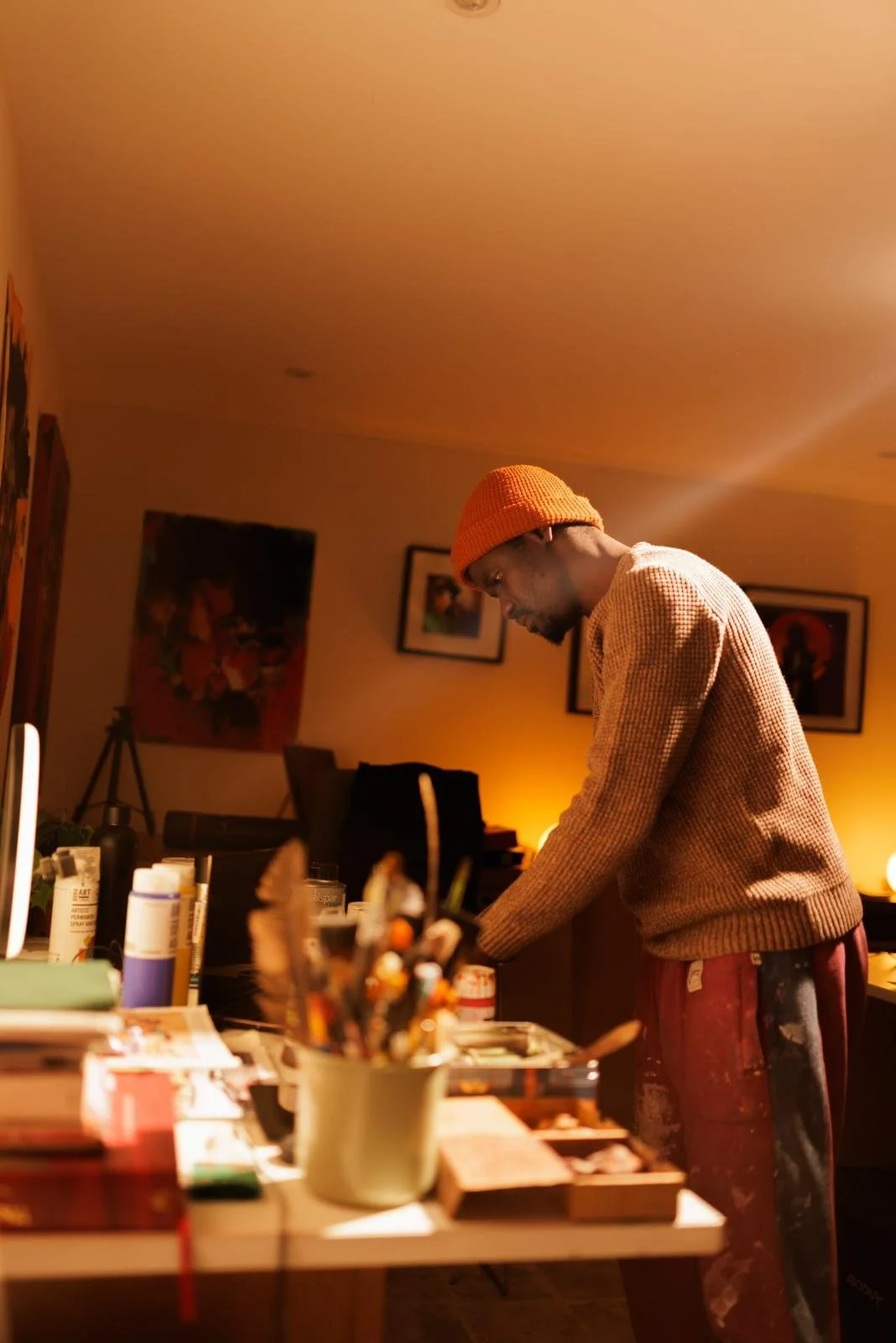 This story finds a fitting place within the exhibition Bound by Roots, Divided by Paths, showing 1st –31st October 2025 at Dudley Community Library as part of this year’s Black History Month. In this cultural crossroads, Abraham invites dialogue with local residents and the wider West Midlands community through a series of figurative paintings and drawings that reimagine the journeys of the Modakeke. The exhibition will also feature community engagement workshops, storytelling sessions, and ceramic sculpture making.