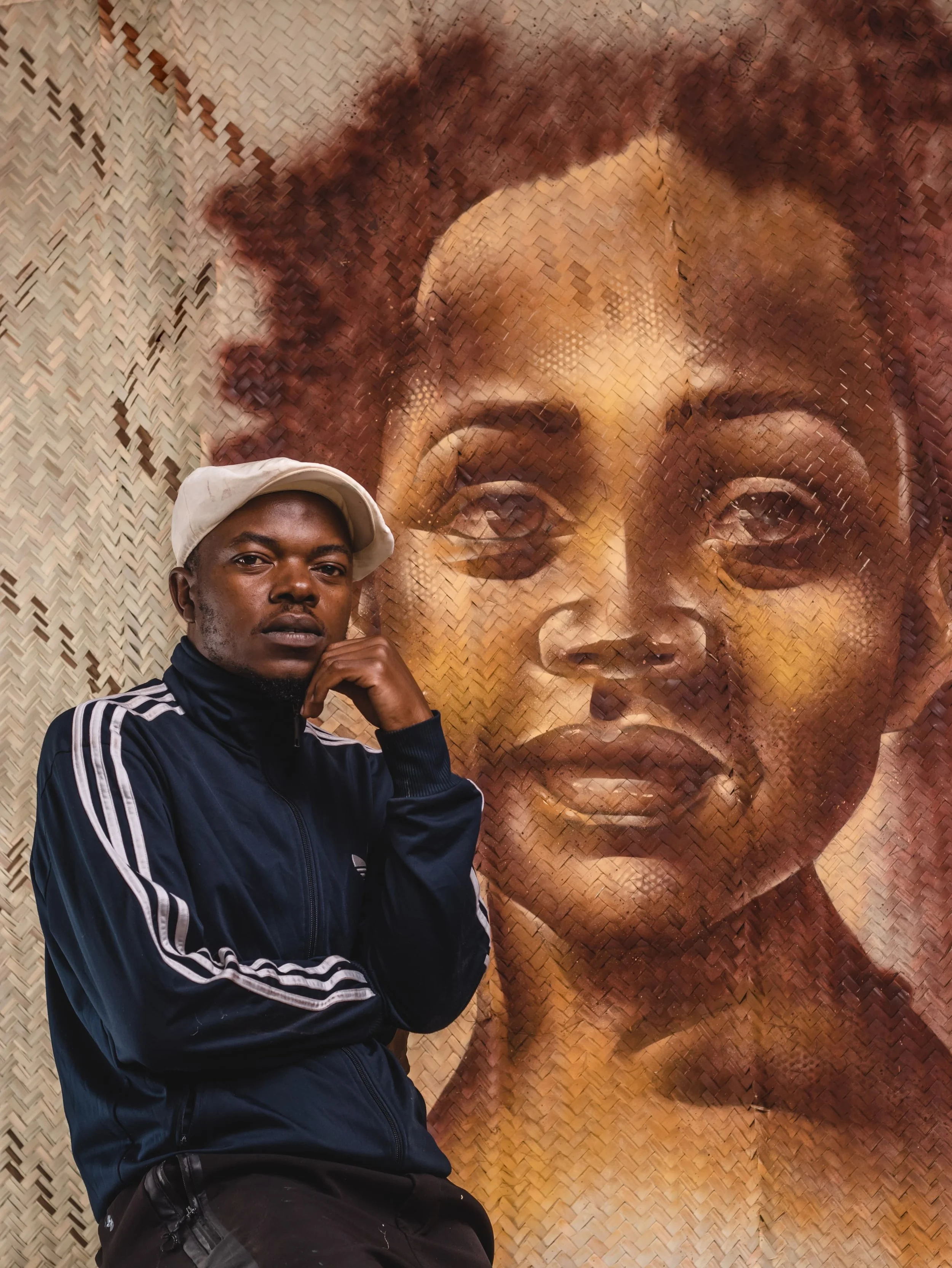 Working across unconventional surfaces, such as burlap sacks, makuti mats, papyrus, and salvaged materials, Swift9 creates pieces that absorb both paint and history.